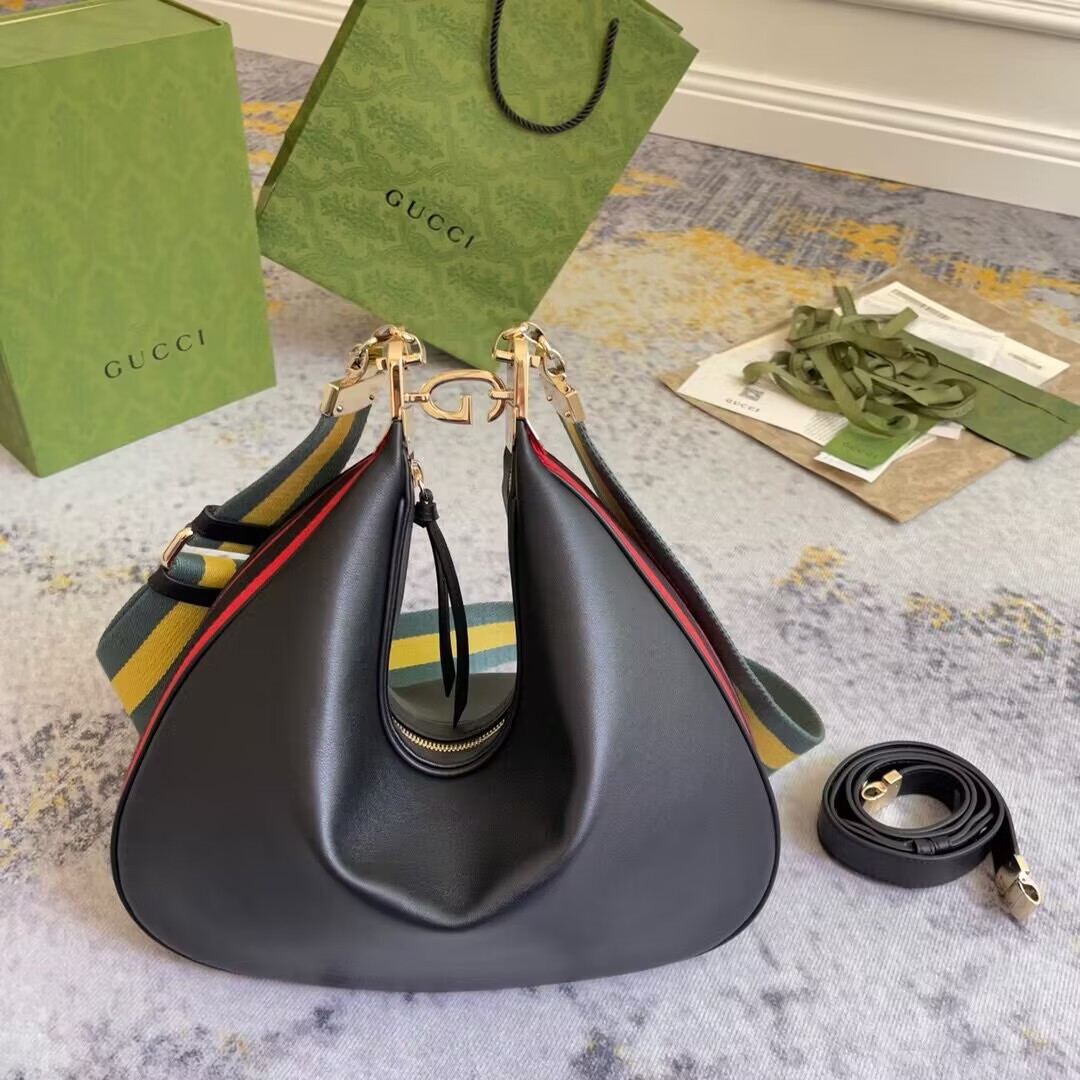 G*u*i attache medium shoulder bag black 13.8″w x 12.6″h x 2.4″d