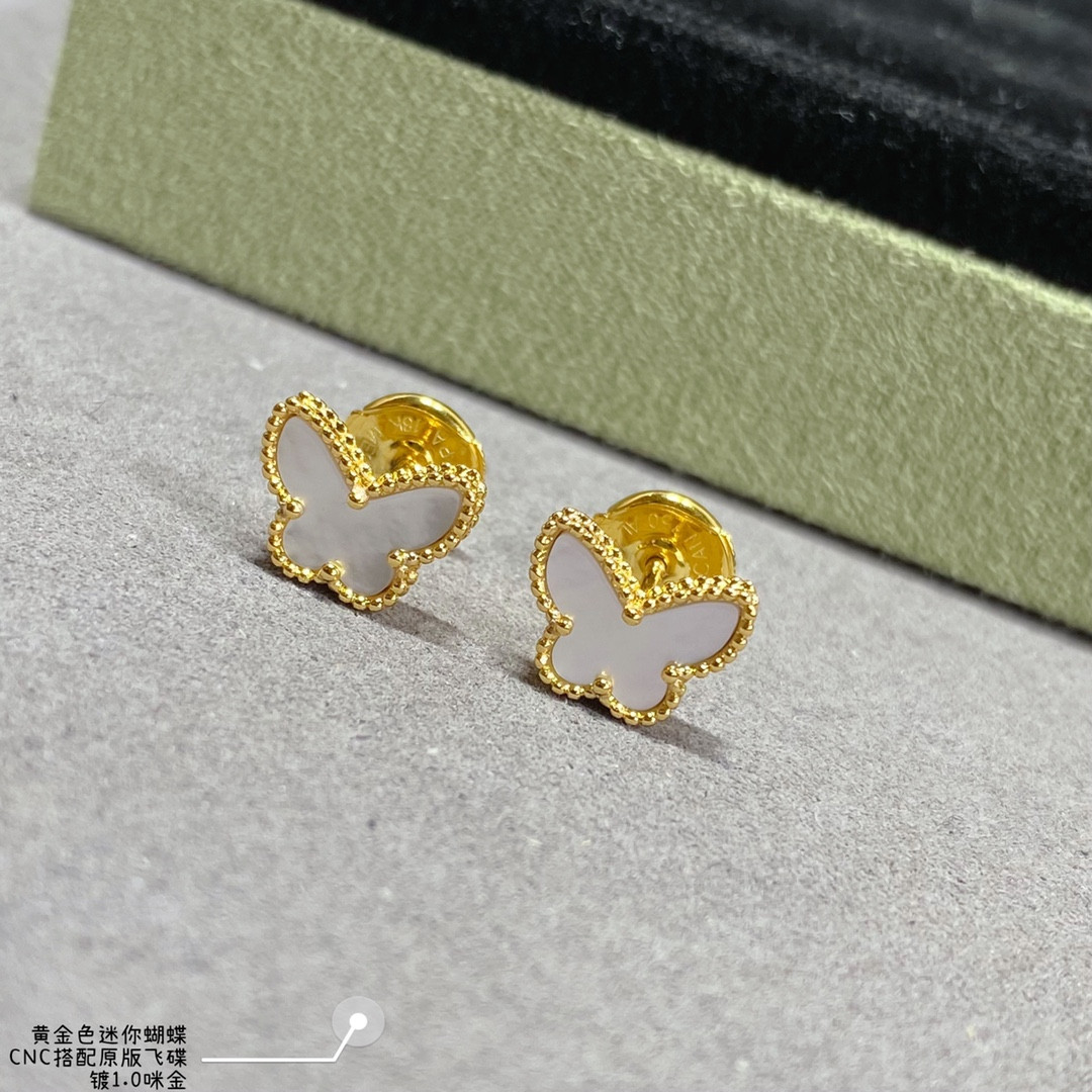 V*N CL*F & arpels white mother-of-pearl butterfly earrings